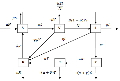 Penelitian ini menggunakan model SVICTR untuk memodelkan transmisi